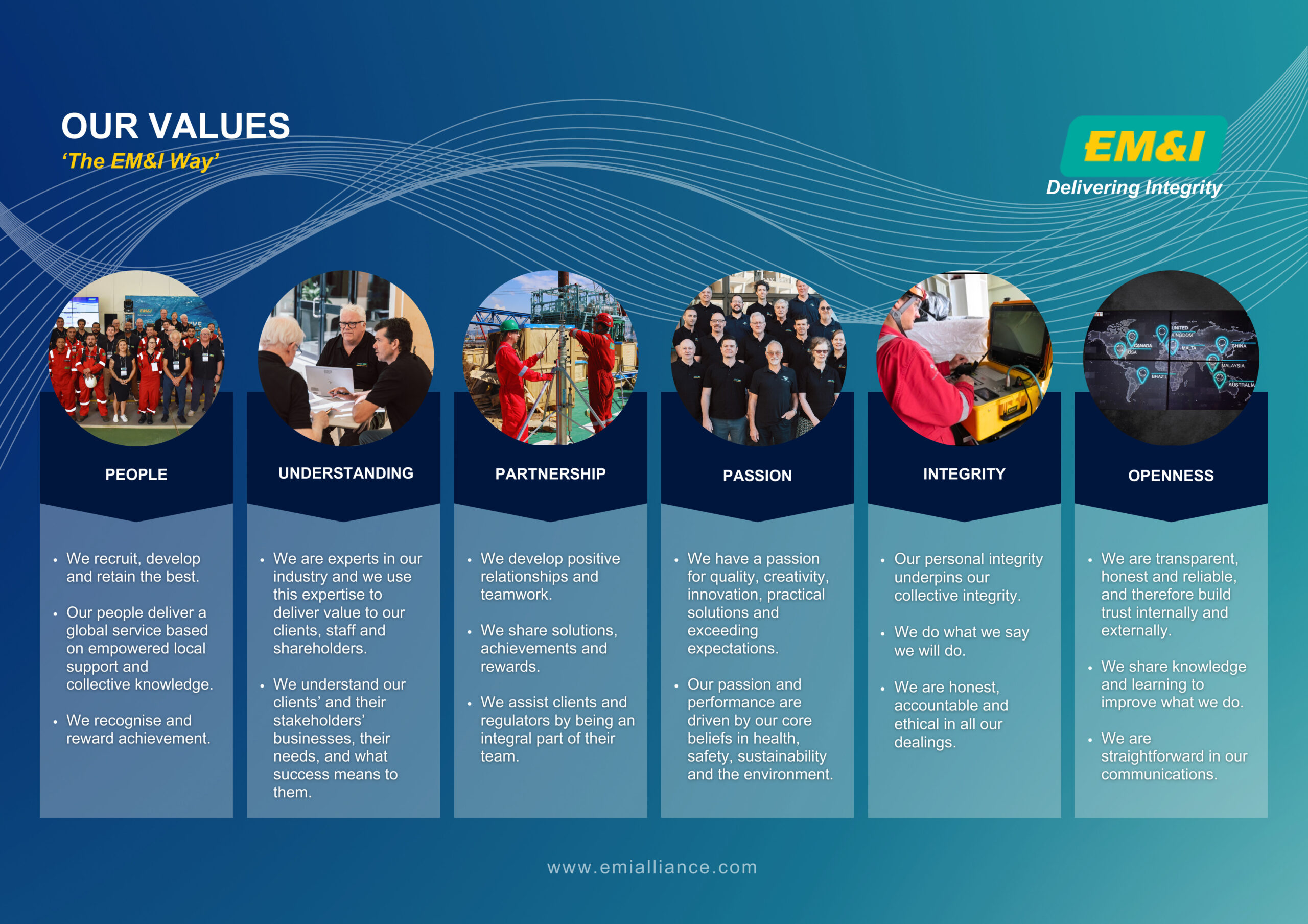 Our Values ‘The EM&I Way’ promote fairness, integrity, openness, compassion, teamwork, recognition and reward.